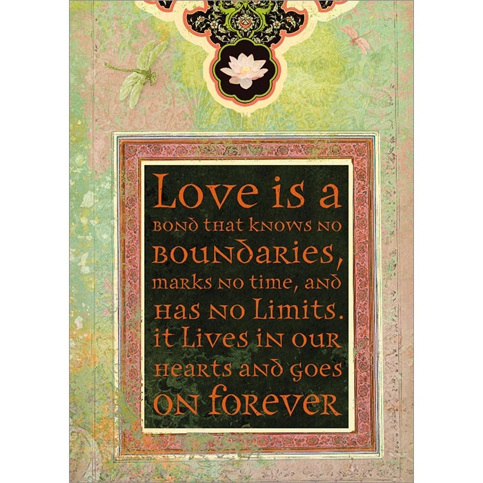 Love is a bond that knows no boundaries, marks no time, and has no limits. It lives in our hearts and goes on forever.
