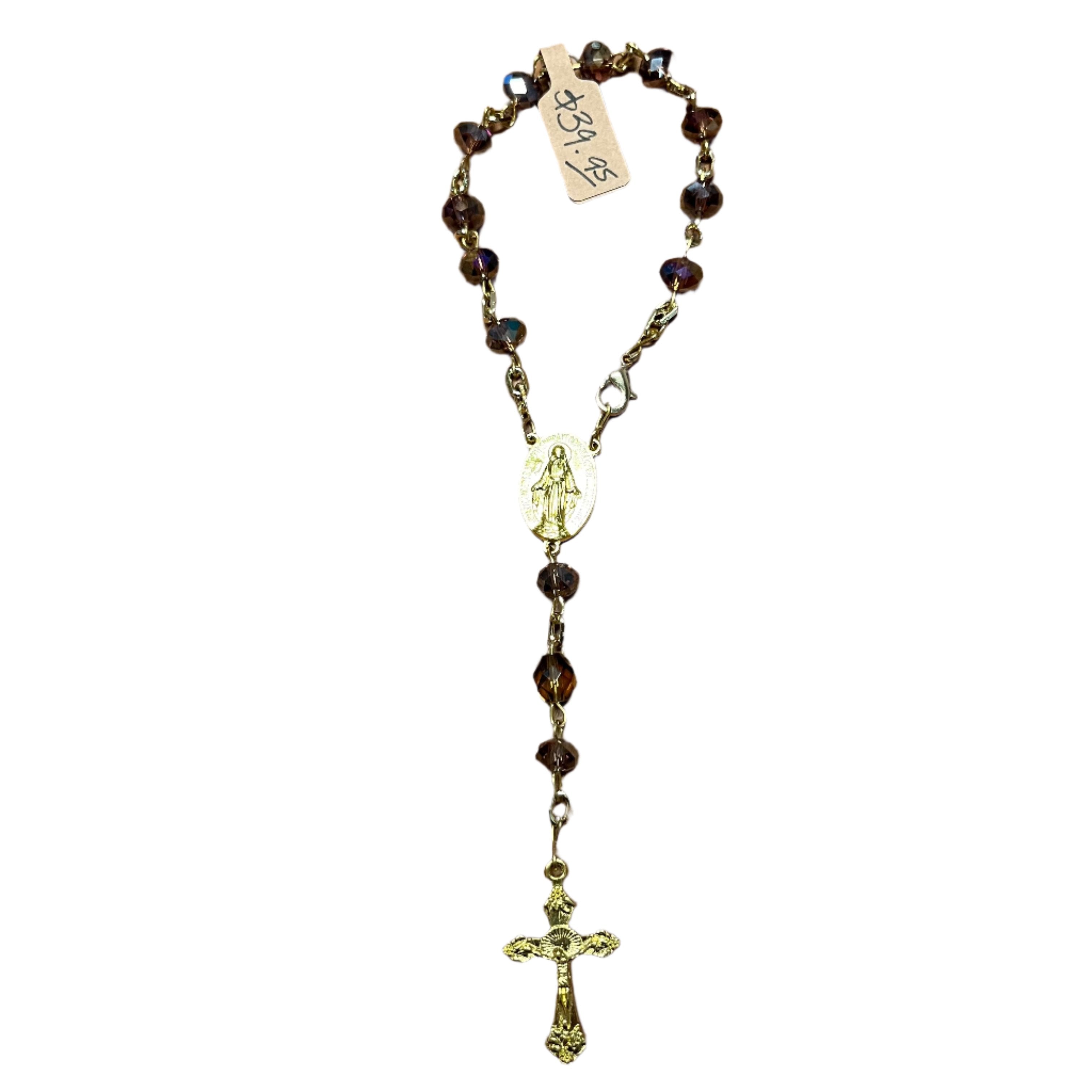 Celebrate a wedding by attaching this beautiful locally hand-made rosary to your bouquet. Affix to your cars rear-view mirror afterwards for protection in you travels.