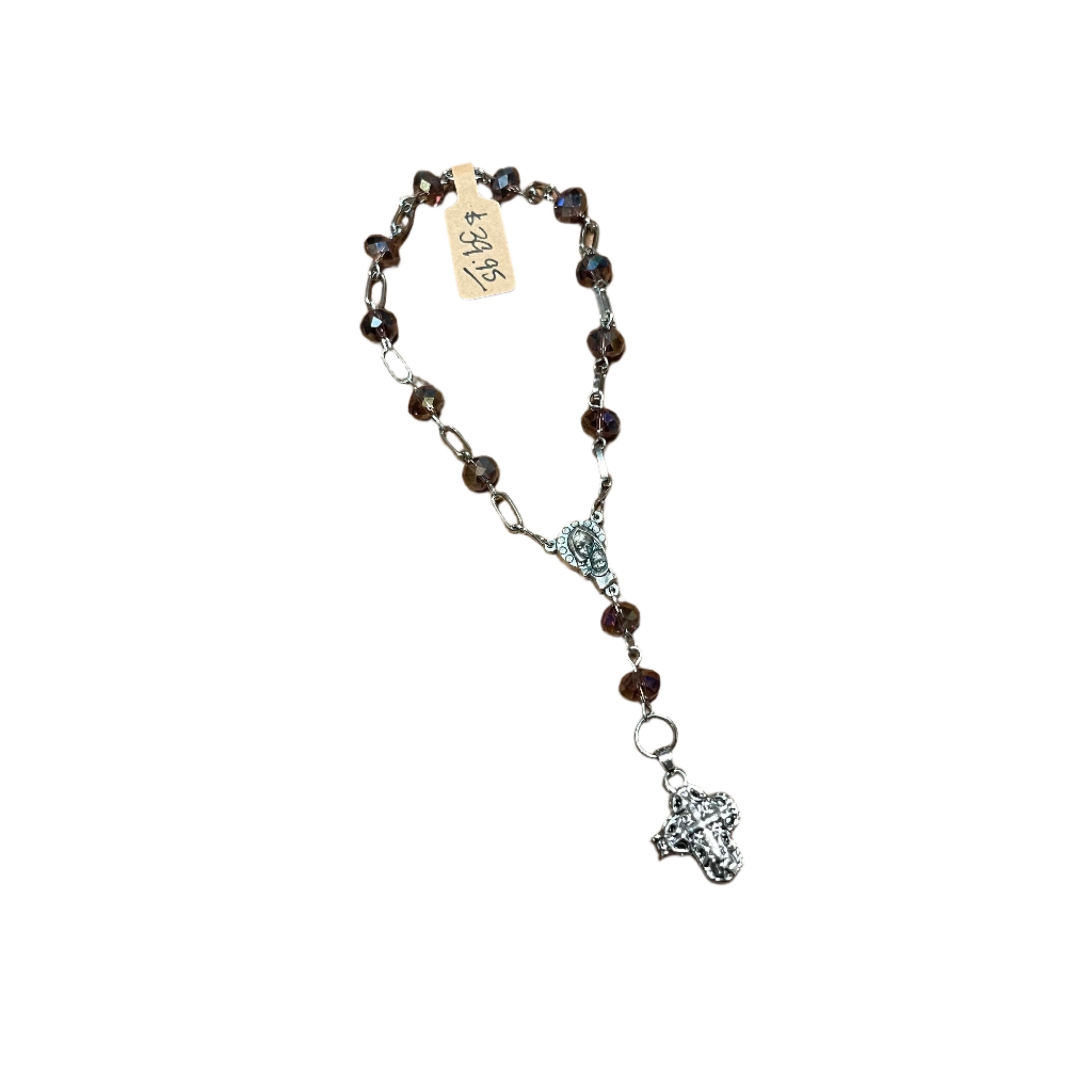 Bridal Bouquet/Car Rosary- Amber Crystal W/Silver Accents