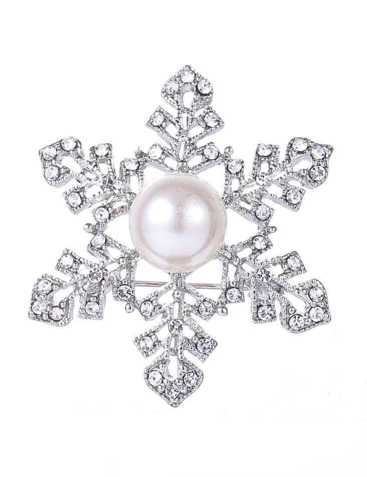 Brooch- Snowflake w/Pearl Silver