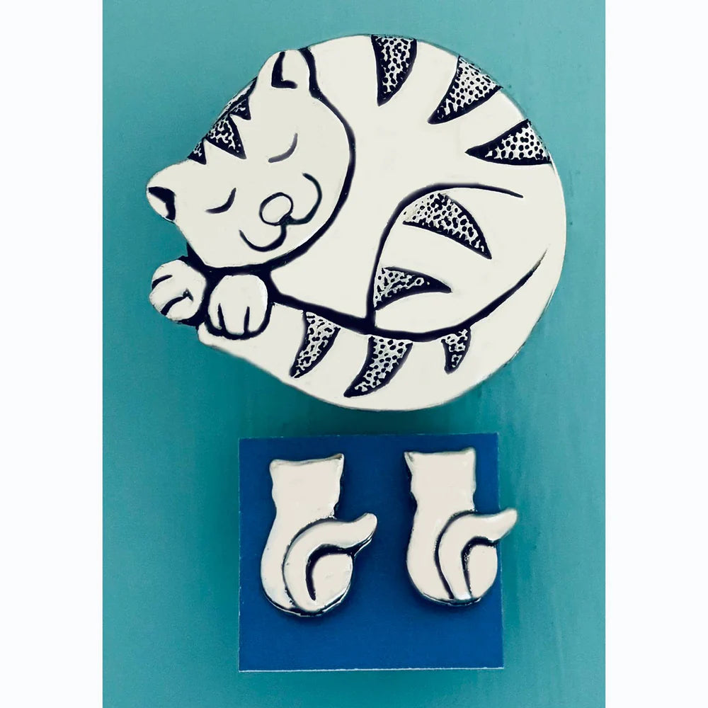 BS- Pewter Box w/Stud Earrings- Cat