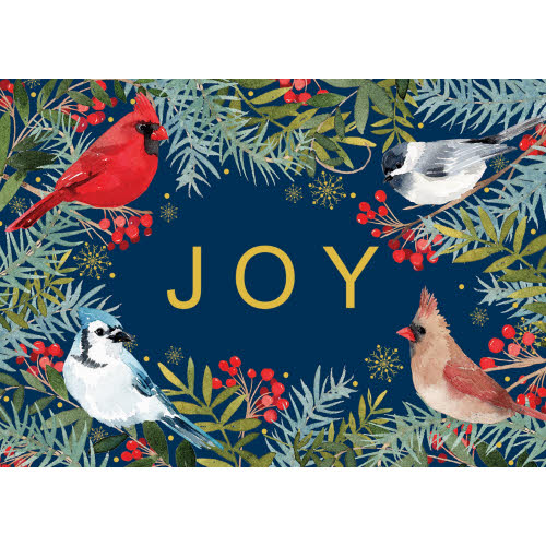 Boxed Deluxe Christmas Cards Set/20- Snowy Songbirds
