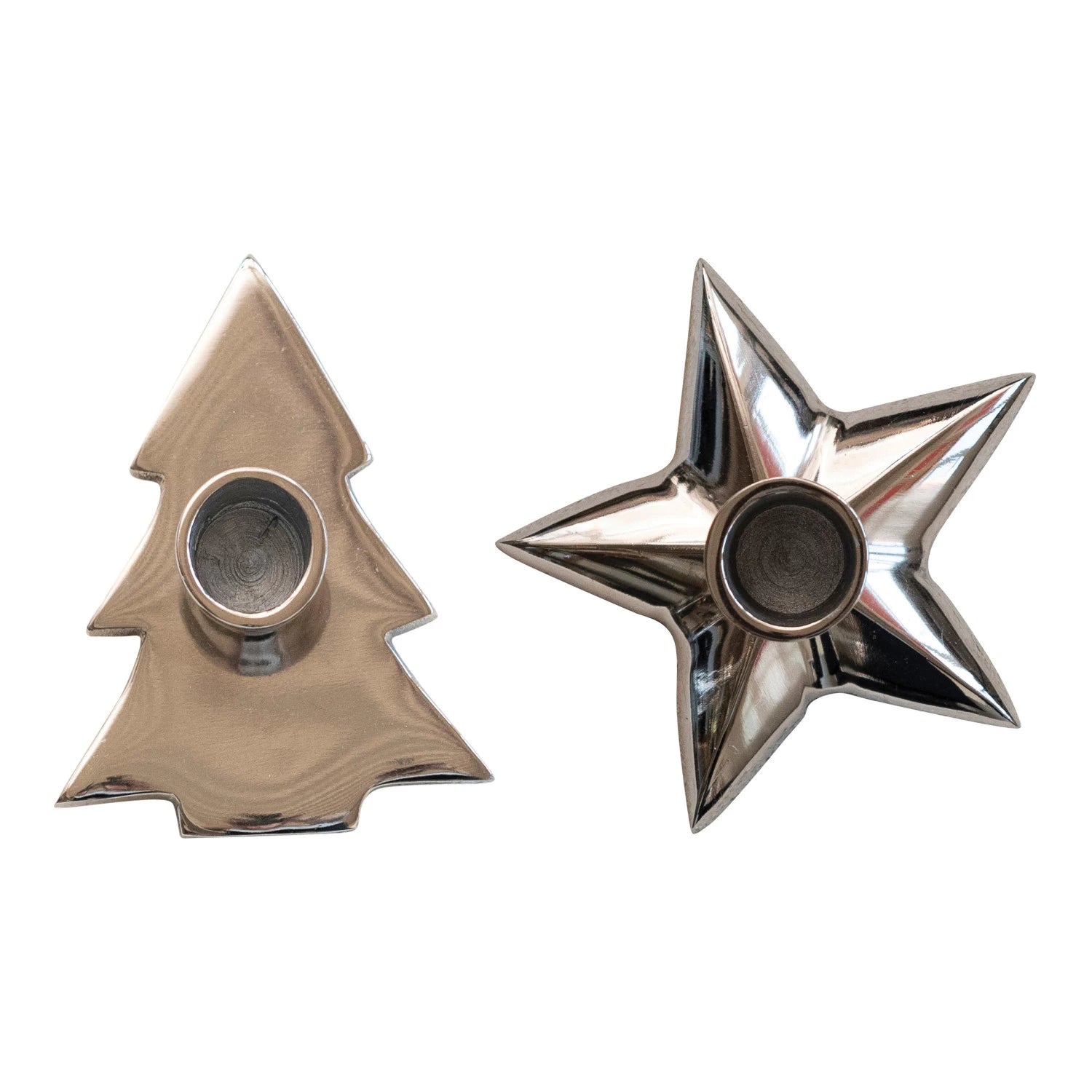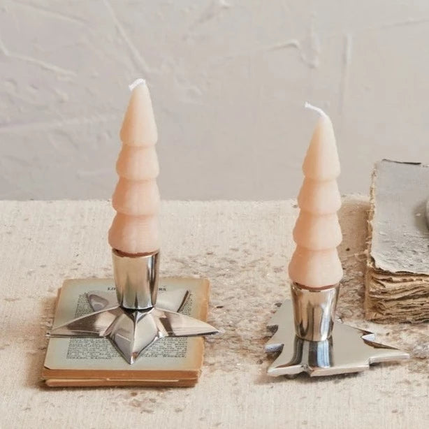 4"L Electroplated Aluminum Tree/Star Taper Holder, Nickel Finish