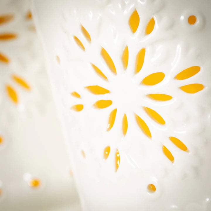 Step up your winter decor with these snowflake lanterns! The creamy white, ceramic lanterns will contrast perfectly against your Christmas and winter greenery and the beautiful glow from the snowflake cutouts will make you feel cozy-the very definition of a hygge vibe. Hanging or standing, you'll love these holiday accents.