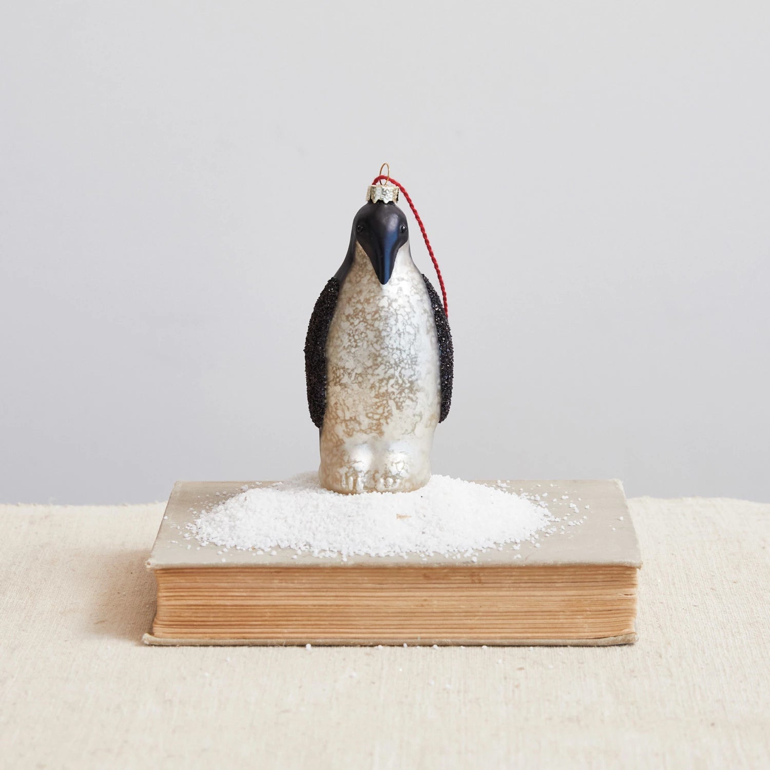 2-1/2" Round x 5"H Hand-Painted Mercury Glass Penguin Ornament, Black & White