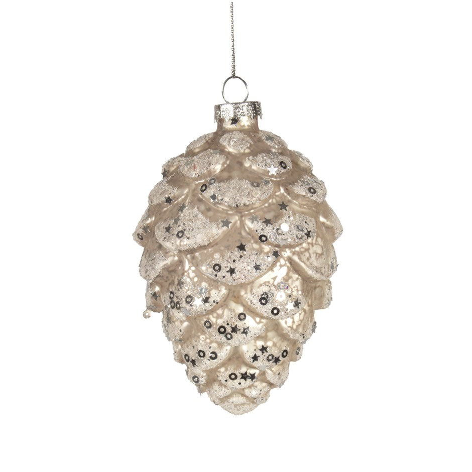 Ornament- Glass Silver Pinecone
