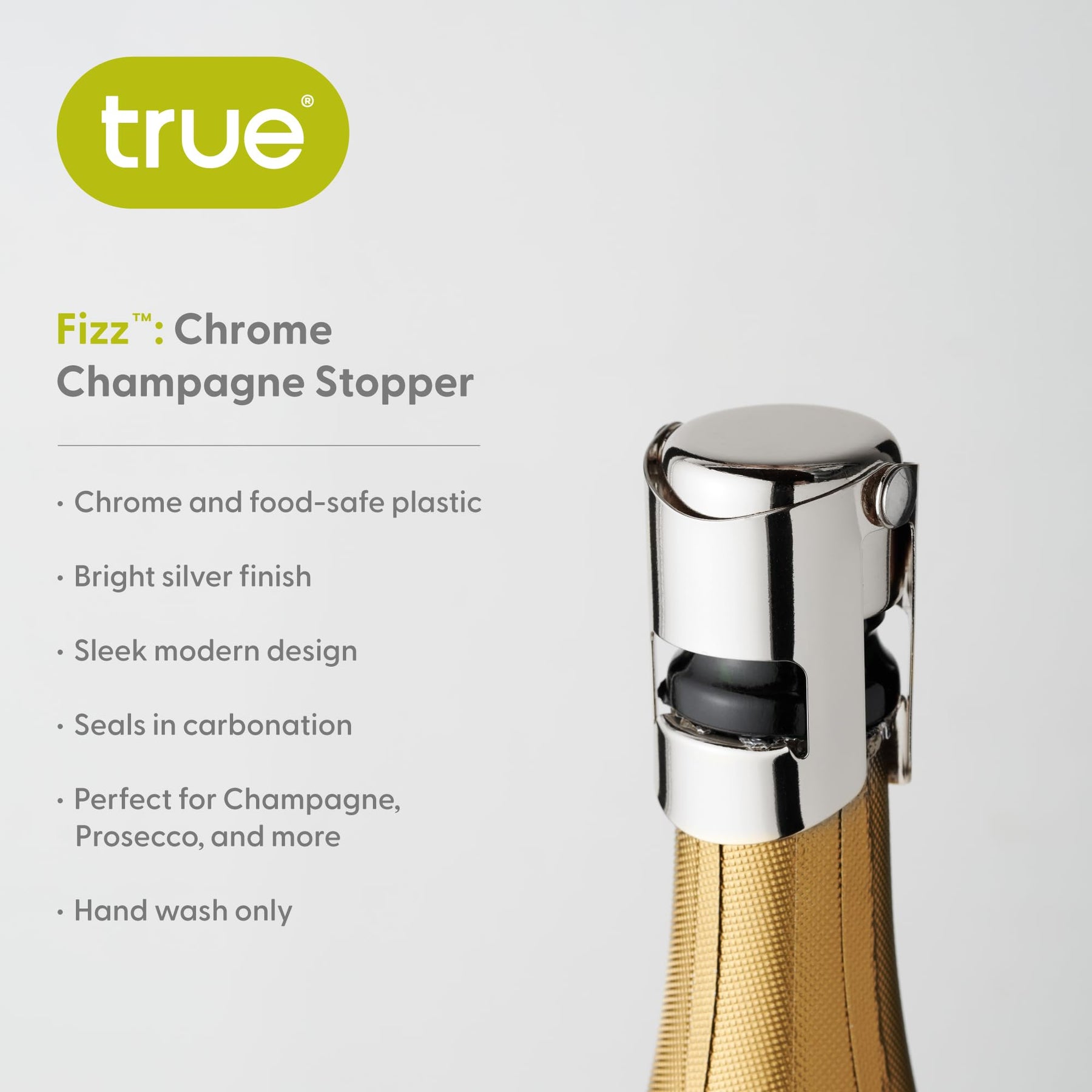 Don't let the party fizzle after you've popped the cork. This Fizz Chrome Champagne Stopper seals in the sparkle to keep the celebration going longer. Push down to seal Chrome & food-safe plastic Fits standard, champagne & specialty beer bottles