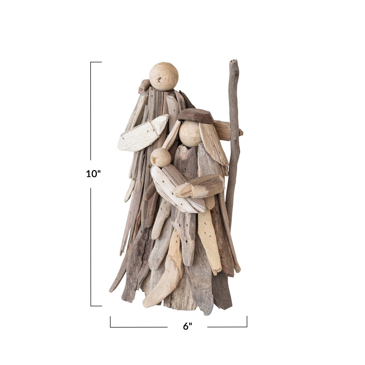 6"L x 4"W x 10"H Handmade Driftwood Holy Family, Natural