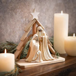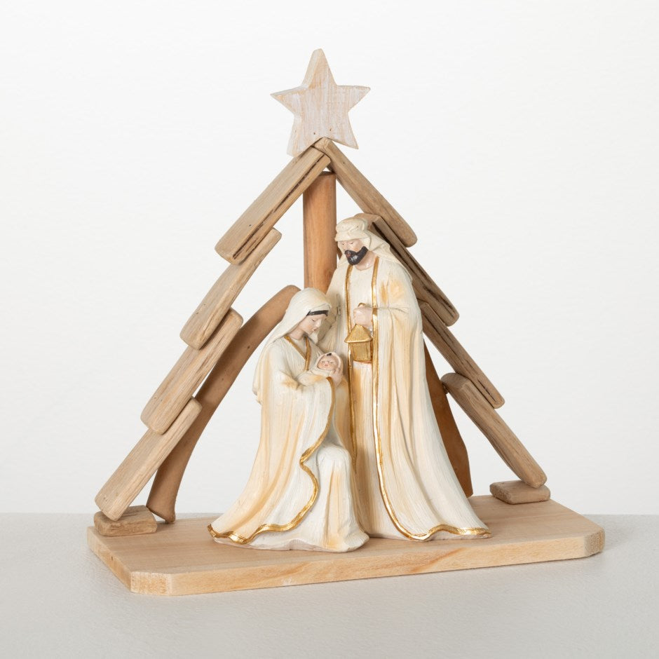 This Holy Family Scene by Sullivans measures 11" high 4.75" wide x 10.75" long and is ideal for inspirational decorating all year long.
