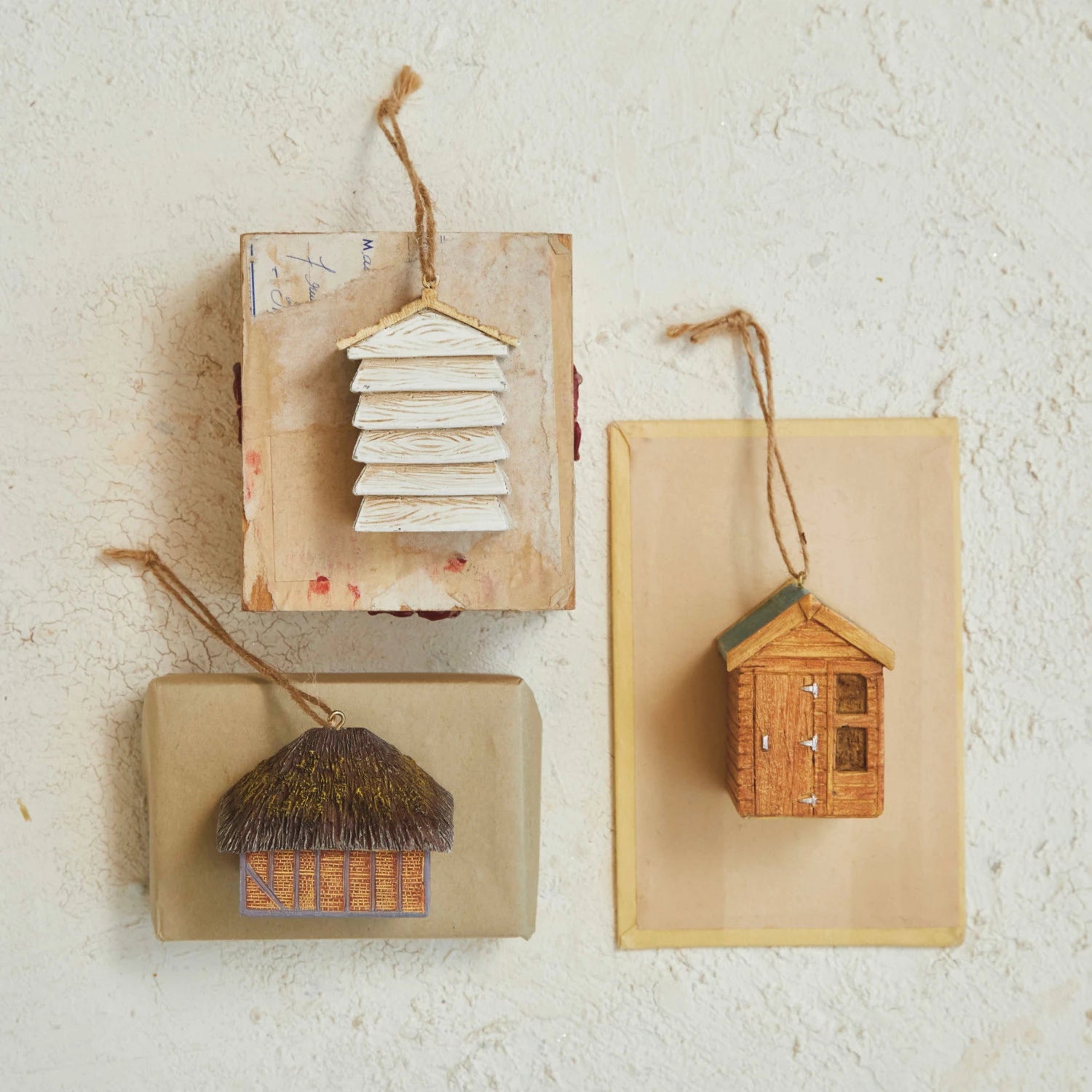 2-1/2"L x 1-3/4"H Resin Bee House Ornament, Multi Color, 3 Styles