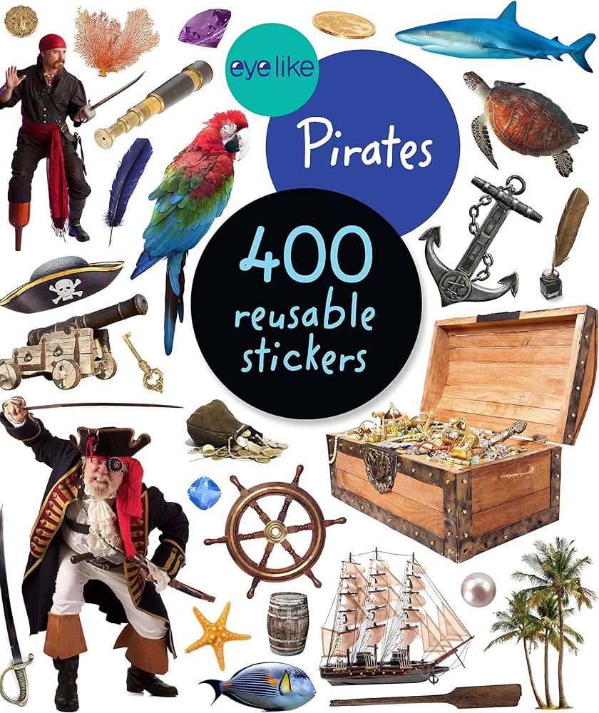 400 pirate-themed, full-color photographic and illustrated stickers are vibrant, beautifully detailed and lifelike—and durable, designed to be stuck on, peeled off, and stuck on again without tearing or losing adhesive.