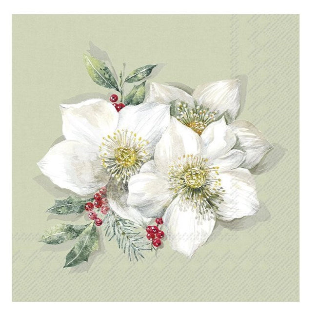 Beverage Napkin- Christmas Rose