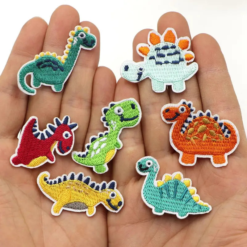 7 Iron-on embroidered applique repair patches for use on clothing, jackets, jeans, backpacks and more!