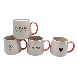 Share your love for your girlfriend, spouse or coffee with these cute Heart Mugs in assorted styles. The perfect mug to enjoy coffee, tea or hot chocolate.