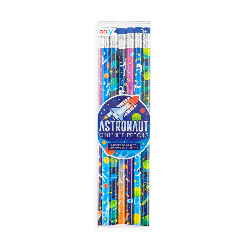 Write and draw with the inspiration of astronauts in space. The Astronaut graphite pencils are a set of 12 number 2 graphite pencils in 4 different styles. Your writing will be outta this world with these celestial pencils. Ages 3+
