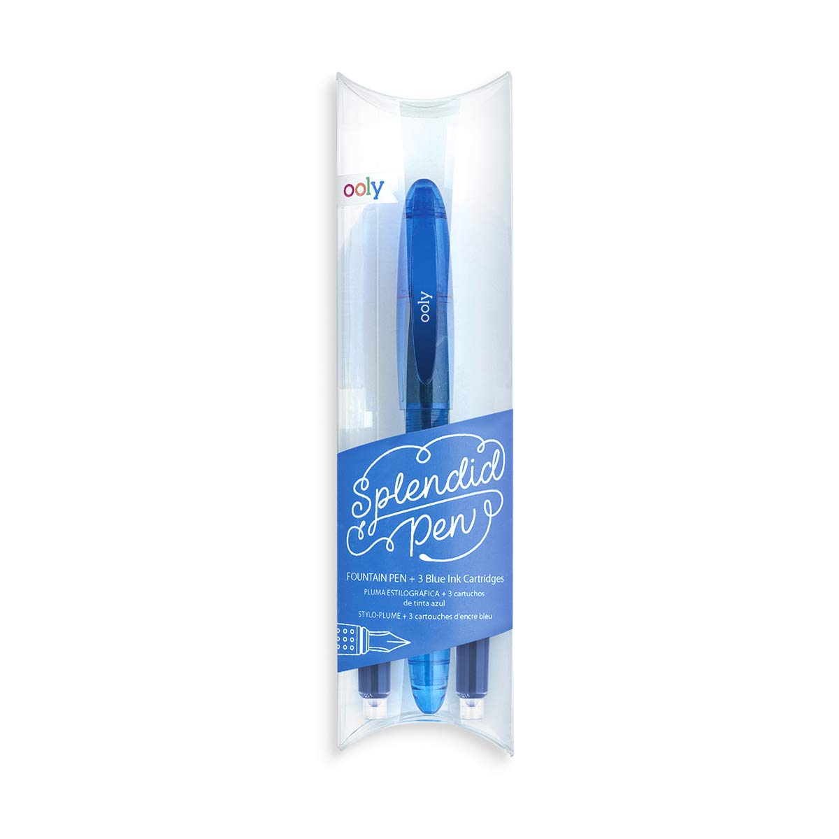 Enjoy the classic writing of a fountain pen with the Ooly Splendid Fountain Pen. This pen comes with 3 blue ink cartridges and a rubber grip for easy penmanship. Enjoy the best of both worlds of fashionable penmanship and smooth writing as Splendid Pens have a small ball-shaped point for a no-scratch writing feel.