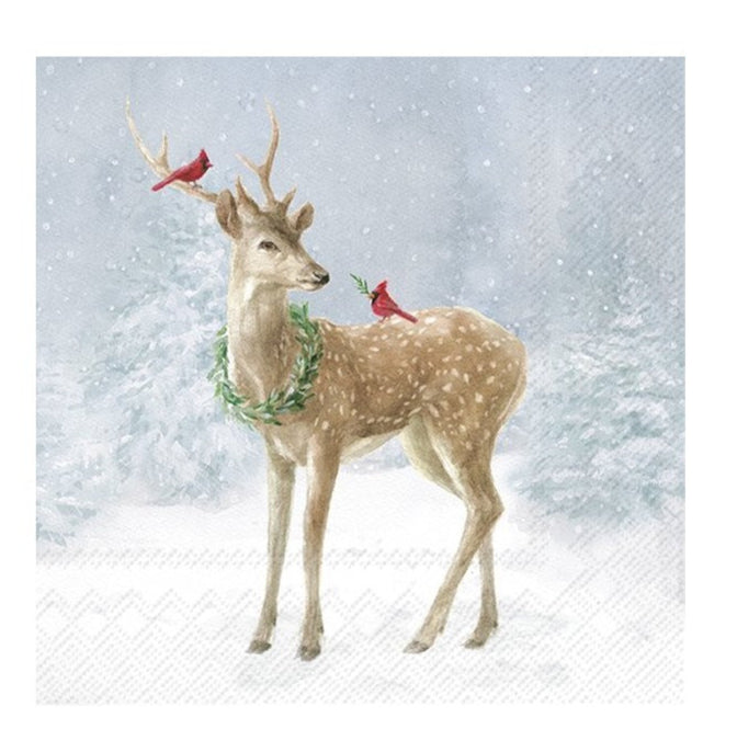 Beverage Napkin- Deer In Snow