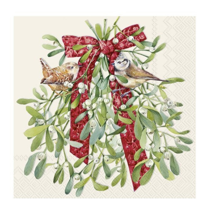 Beverage Napkin- Birds In Mistletoe
