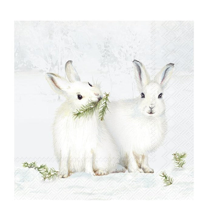 Beverage Napkin- Snow Rabbits