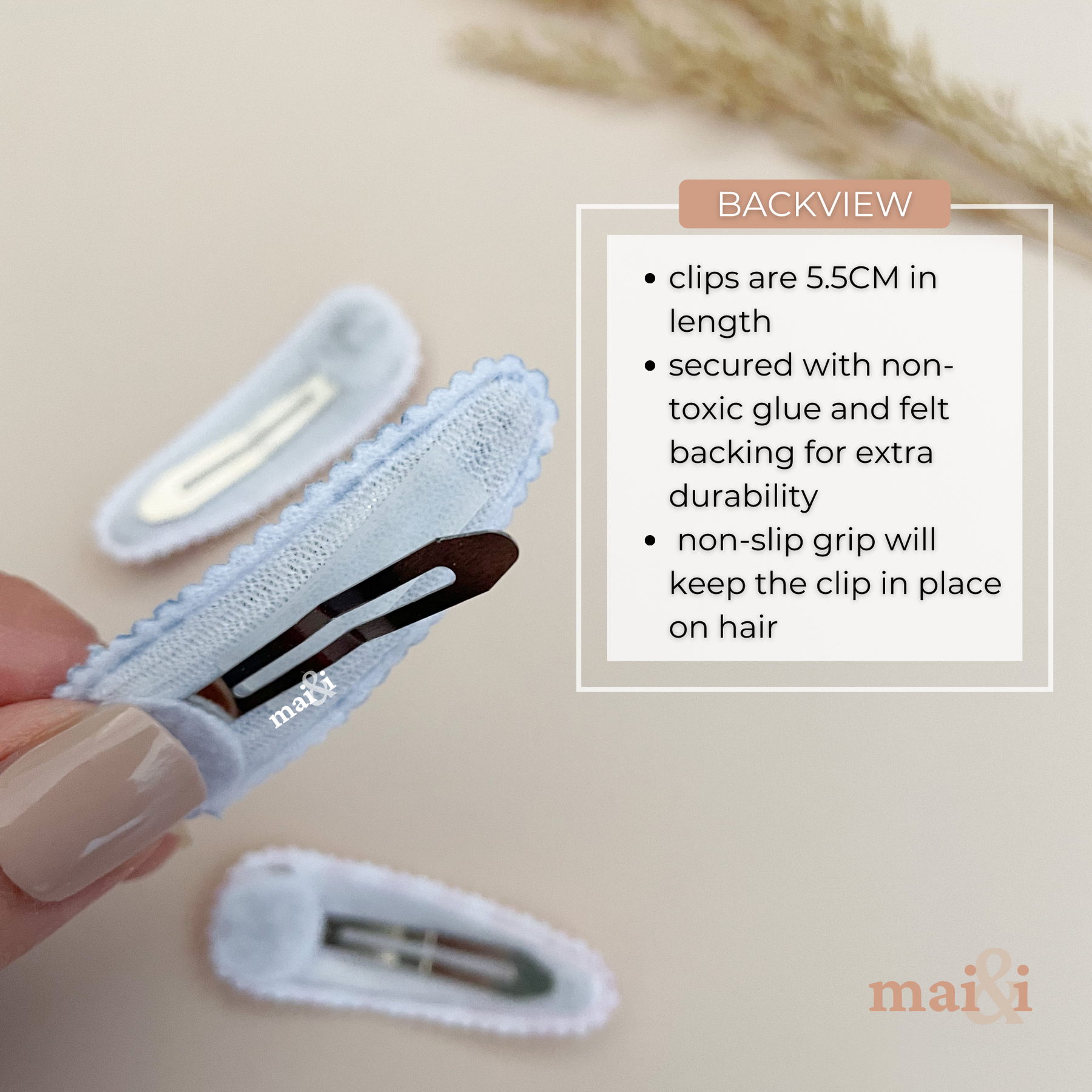 Sold in pairs. All clips are about 5.5 cm long. Suitable as soon as bebe has enough hair (ages 6 months +). Made in Canada