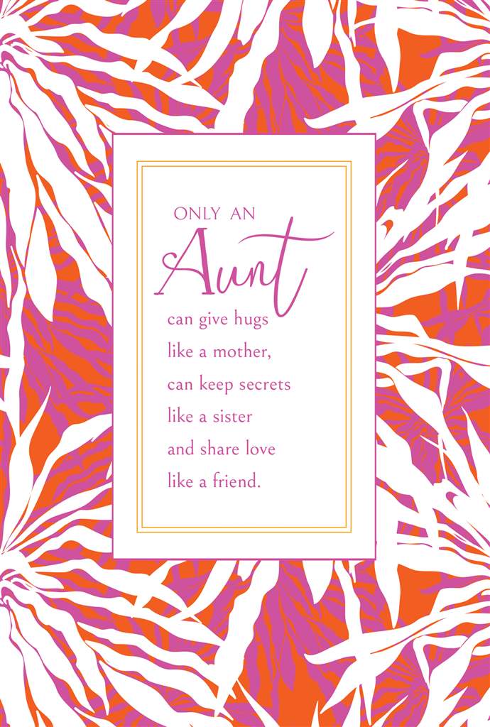 Outside Text: Only an Aunt can give hugs like a mother, can keep secrets like a sister and share love like a friend.