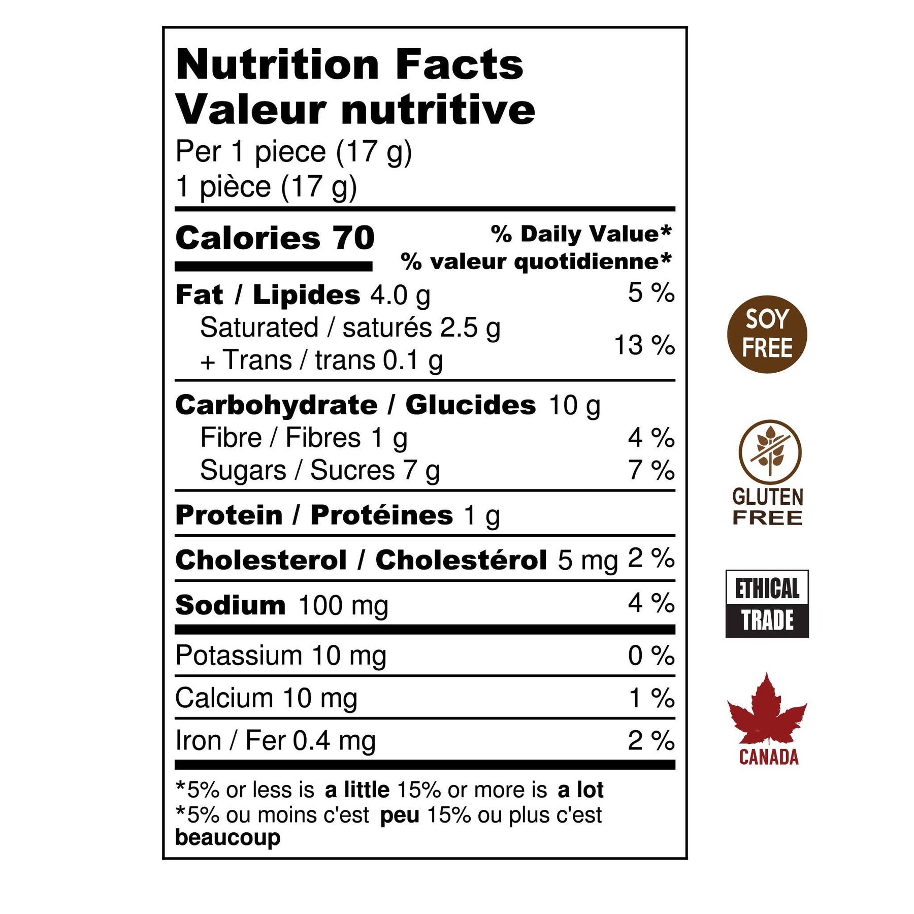 Two words: Yum and Yummy! Handcrafted buttery caramel pieces enrobed in our bean-to-bar 70% dark chocolate topped with flakey sea salt from Vancouver Island Salt Co. Melt in your mouth goodness! 9 piece box. ALLERGENS: CONTAINS DAIRY. May contain peanuts & nuts. Soy Free and Gluten Free.